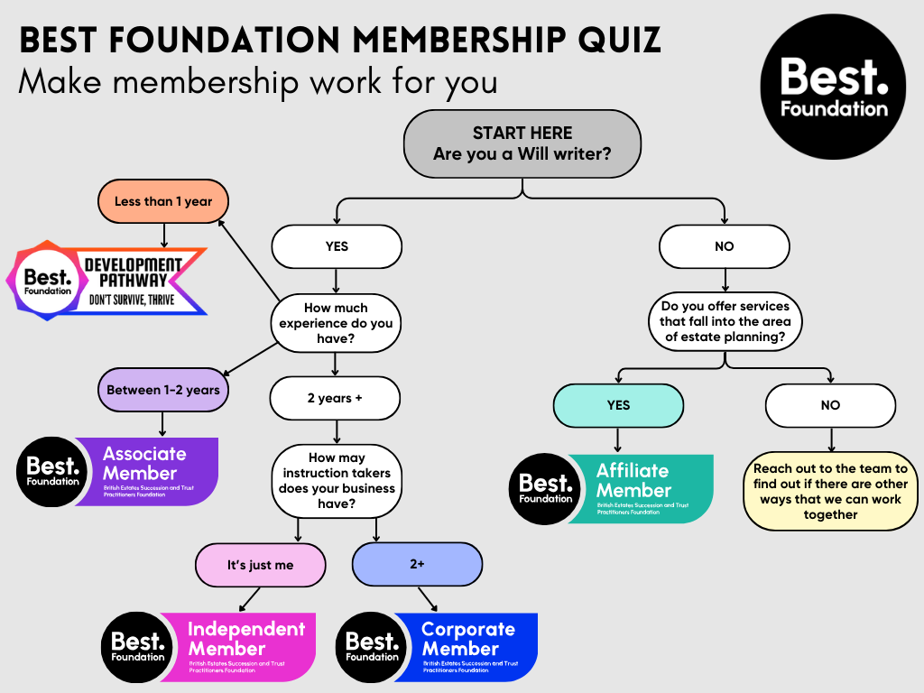 - Access to an experienced Best Foundation member to support you in the early days of your Estate planning career and answer any questions you might have.